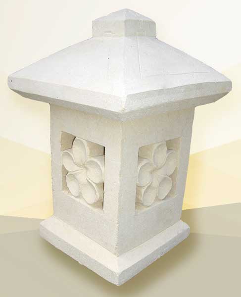 A `wet` carved lantern - place a t-lite inside for illumination. Especially made for use in the garden.