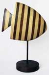 An abstract fish carving on stand, in sonokeling and panggal buaya wood.